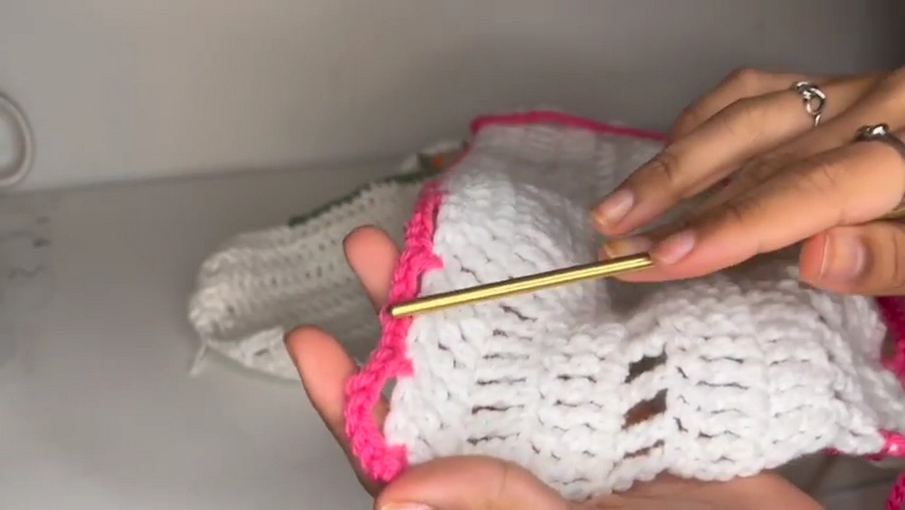 - On each side of the top, chain 1 and work sc evenly along the vertical edges.