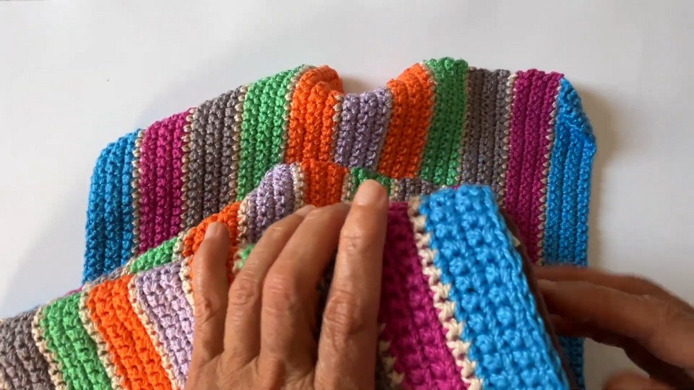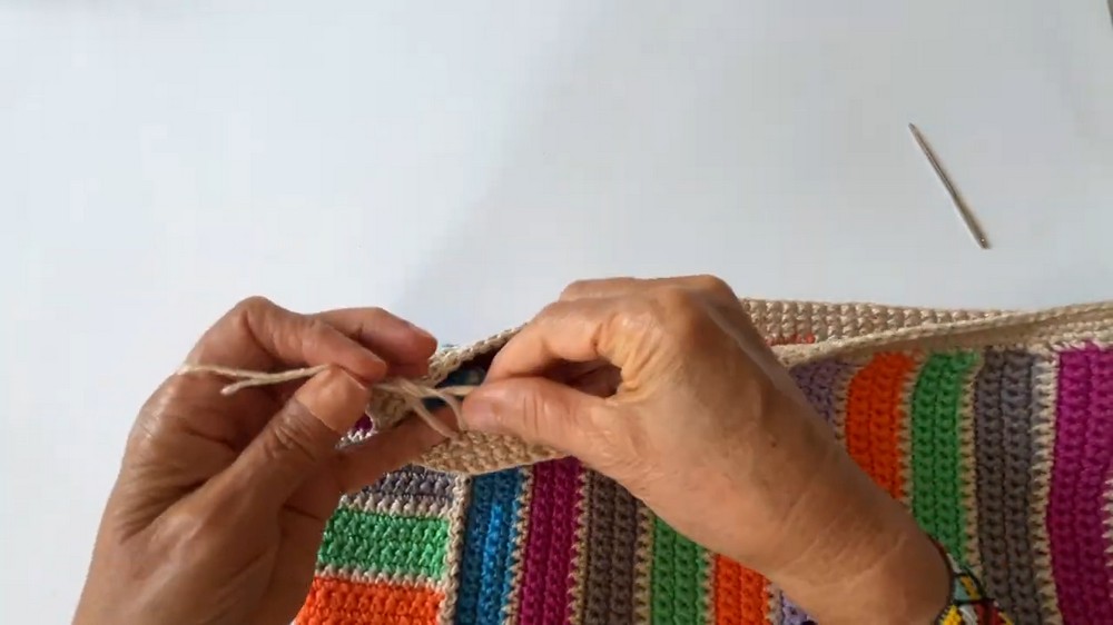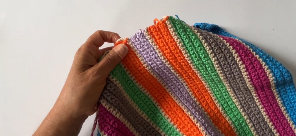 - Continue alternating between the base color and additional yarn colors for the length of the bag.