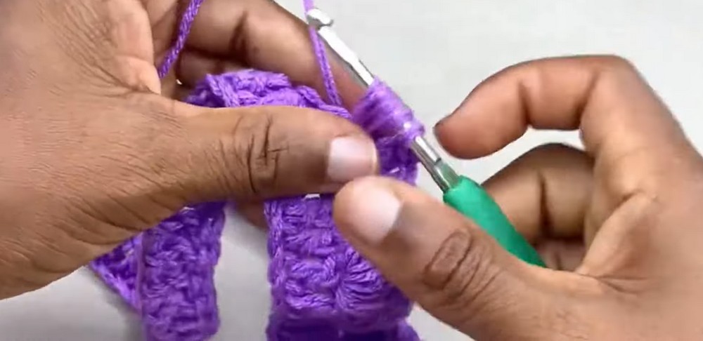 - Crochet front post double crochets (FPDC) and back post double crochets (BPDC) alternately for 2 rows.