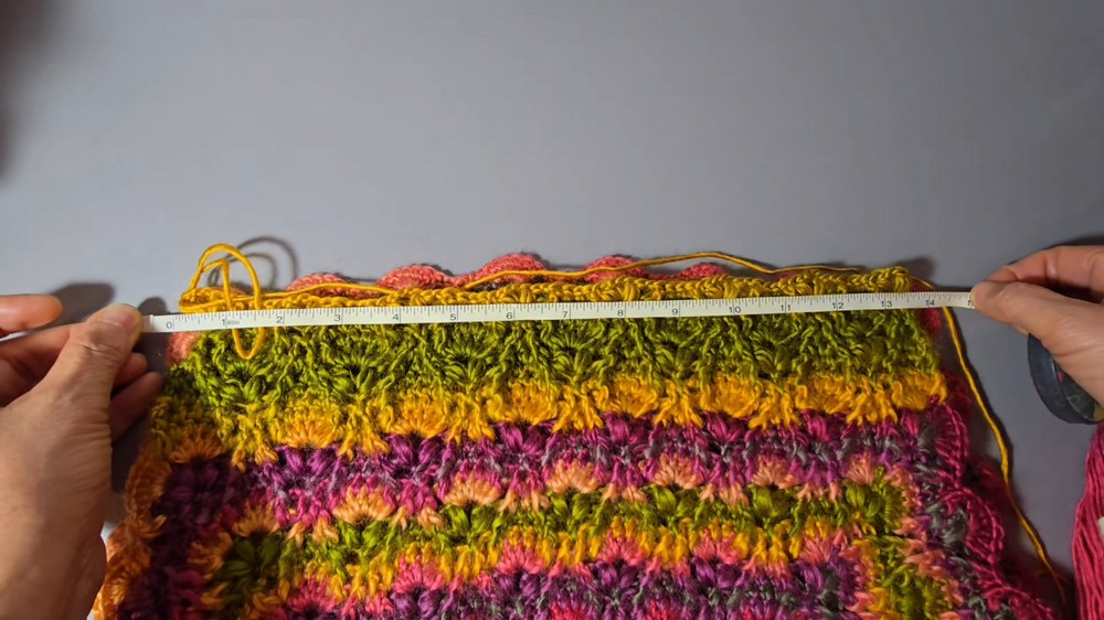 - Crochet rounds to lengthen the body, measuring from the top of the shoulder to under the arm (tutorial suggests 8 inches, adjust as desired).