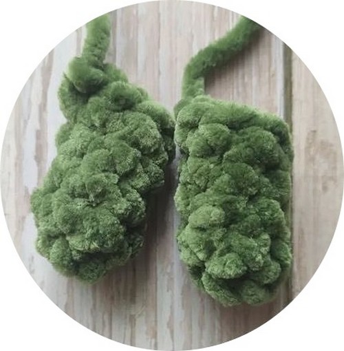- 5 chain, From the second ch from the hook make 4 sl st, you already have a strand, there are 3 so repeat two more times (5 ch + 4 sl st) when you have the 3, leave a long tail to sew.