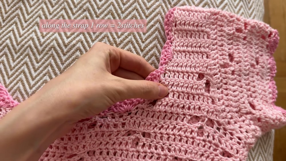 - Crochet 12 rows straight, ensuring it reaches halfway up the shoulder.