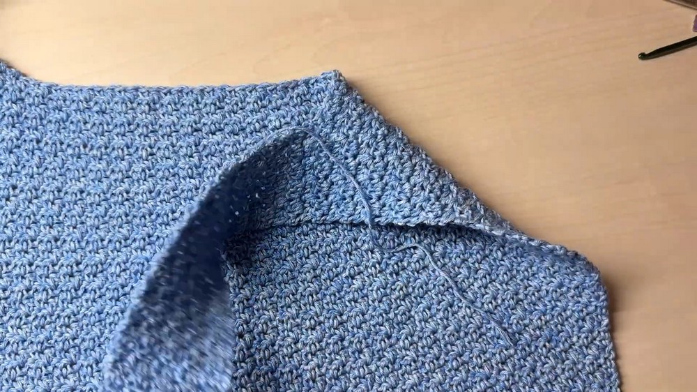 - After completing the increases, continue working 25 rows of SC/DC without any increases or decreases. This completes the bulk of the back panel.