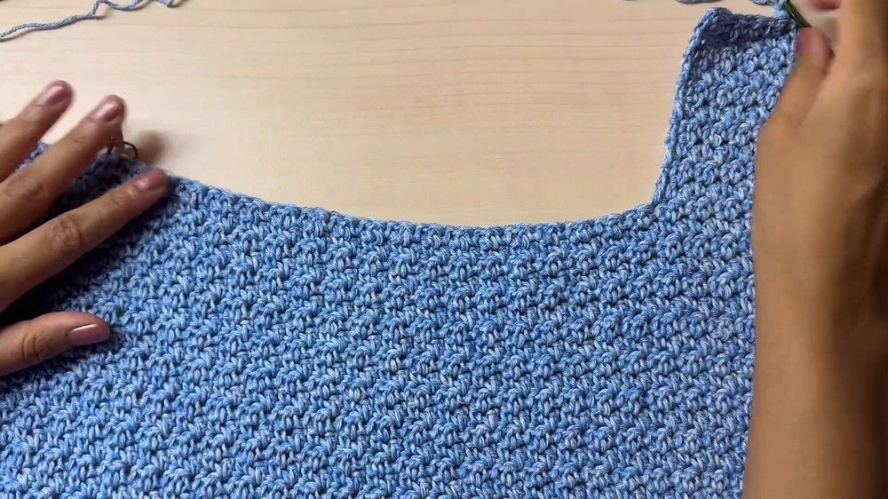 - After the decreases, work 10 rows without any decreases. This helps shape the neckline and strap area.