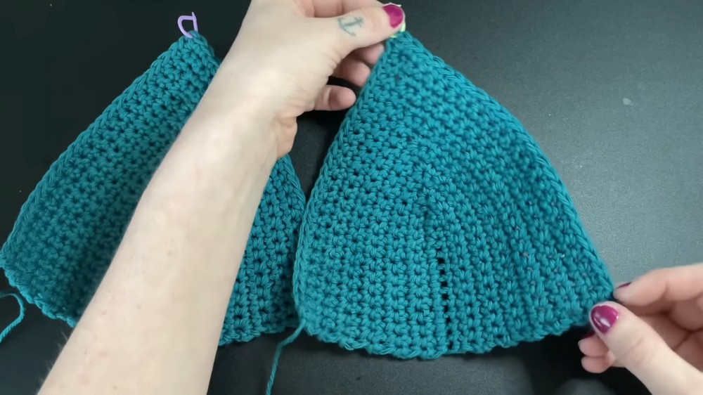- Join the cage rows to the bust sections. Use slip stitches, sewing, or tapestry needle stitching for clean edges at the joints.