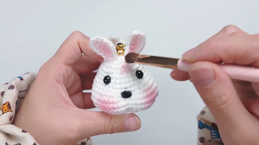 - Attach a ring or shank keychain through the top of the bunny’s head with a durable thread or chain link.