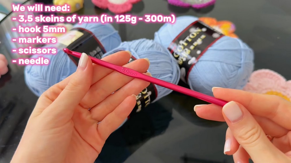 - 5mm crochet hook (suitable for the recommended stretchy yarn).