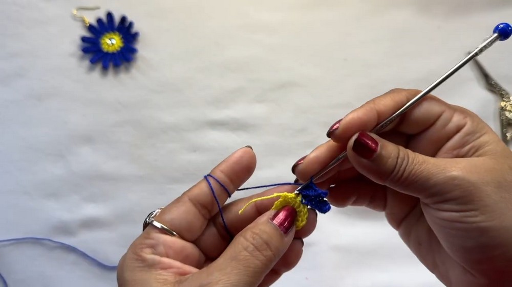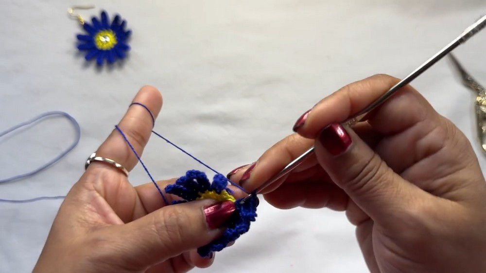 - To attach the earring hooks to the crochet daisy.