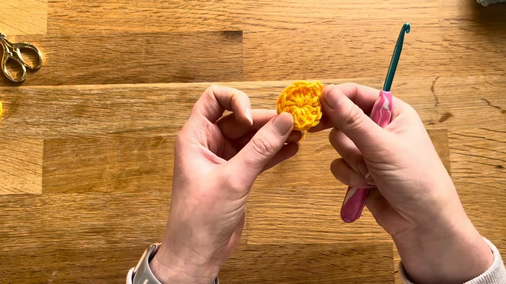 - Tighten the tail of the magic ring to close the center hole.