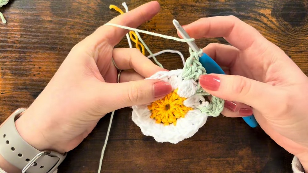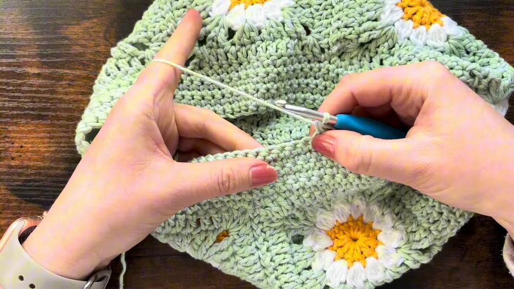 - Work 6 rounds of single crochet (sc) around the edges to provide strength and structure.