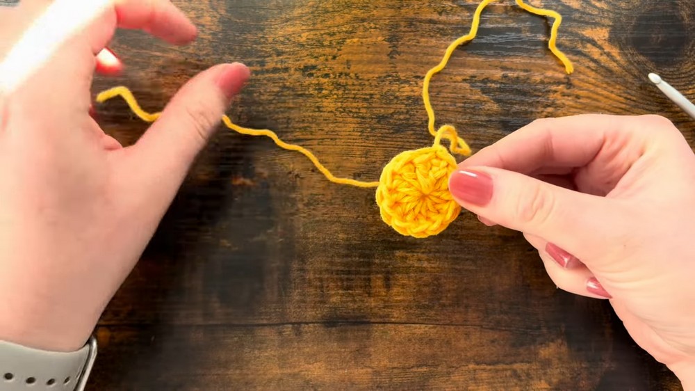 - Work 11 more dc into the ring. (Total = 12 dc.)