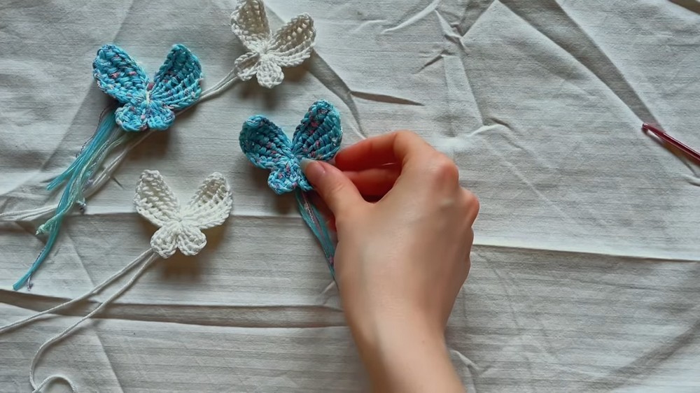 - Sew butterflies onto floral panels using contrasting yarn for standout detailing. Position creatively per your aesthetic preference.