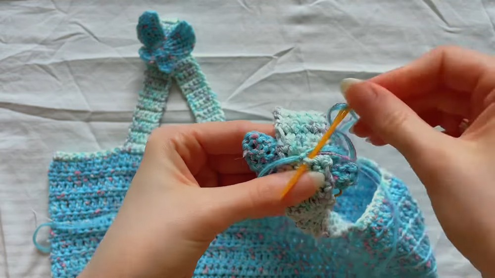 - For weaving in ends and attaching embellishments (butterflies) securely to the garment.