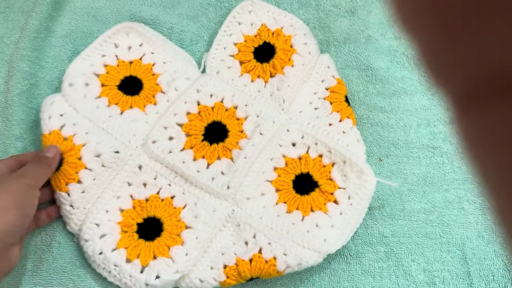 - After joining the 12 squares into a ring, attach the 13th square at the bottom.