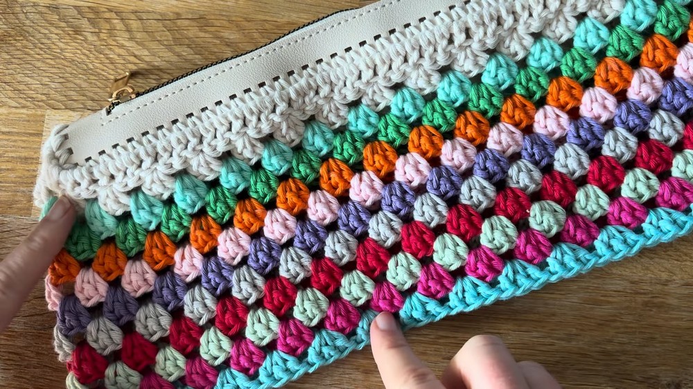 - Add more or fewer granny stitch rounds to adjust the overall height of the pouch.