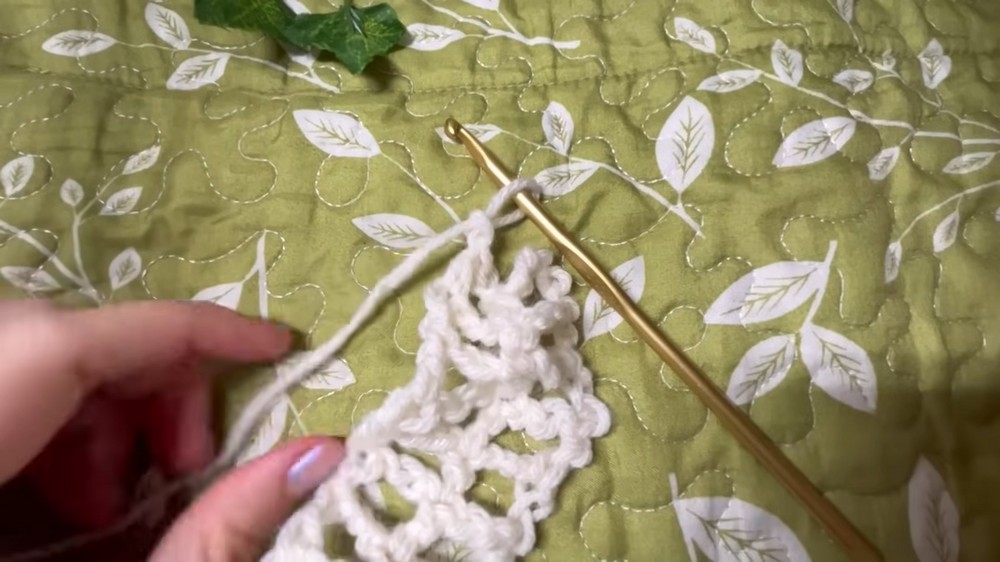 - Ch 53, then SC 52 starting in the second chain from the hook. This creates the base for the mesh.