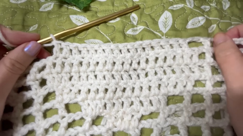 - Increase or decrease the starting chain to match your desired width (following the mesh grid design).