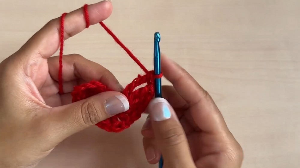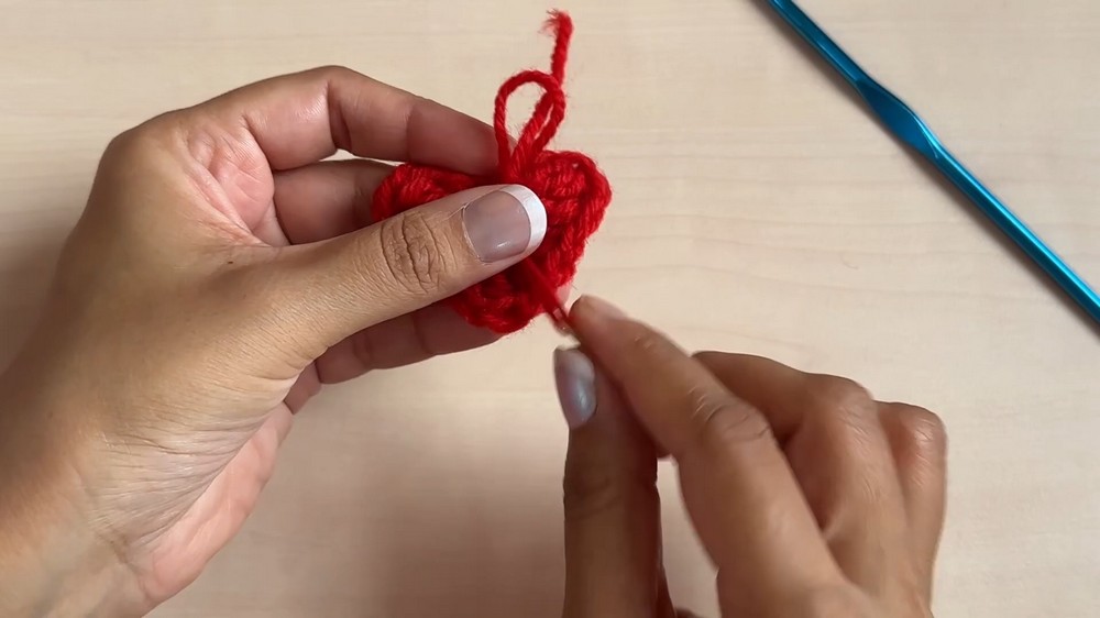 - Pull on the yarn tail to close the magic circle tightly, shaping the heart.