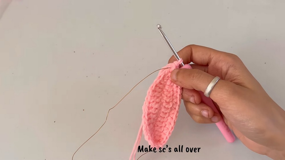 - 3 sc in last stitch.