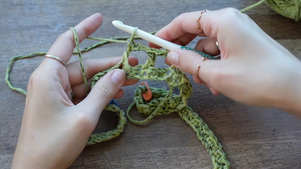 - For a fitted design, Kayla chained 12 stitches to create a snug fit. For a looser design, you can chain more.