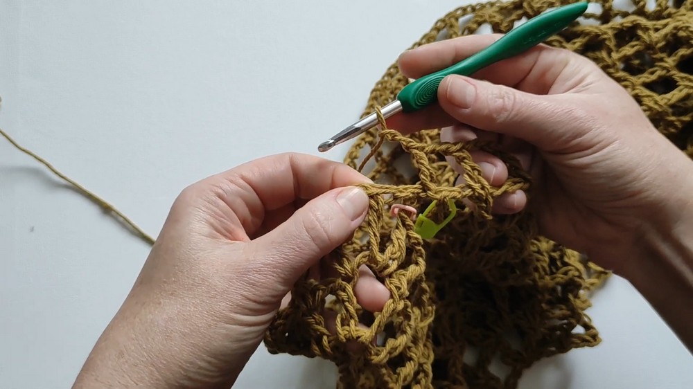 - In one or two rows, replace “chain 2” with chain 1 for 3-4 mesh squares to slightly decrease the width.