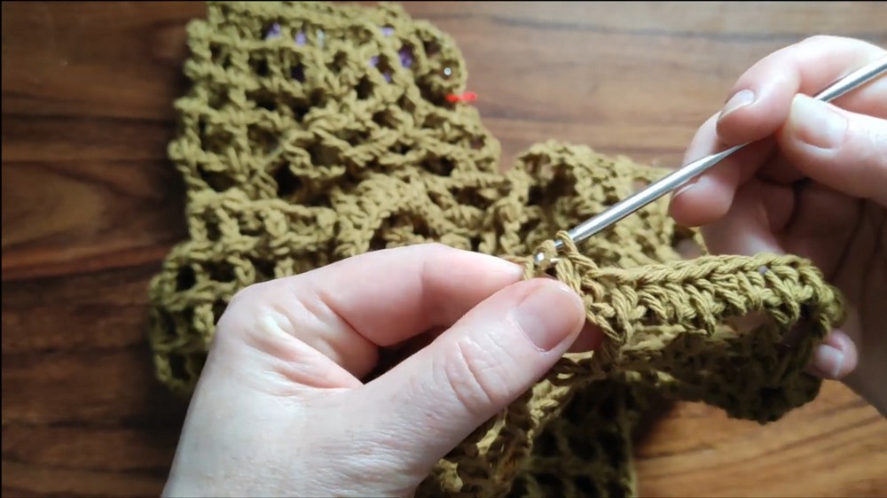 - Chain 2 (or as needed) to connect the underarm gaps, and remove the stitch markers.