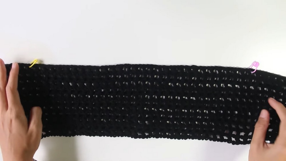 - Place both rectangles flat and align them with stitch markers marking the neckline or sleeve regions.