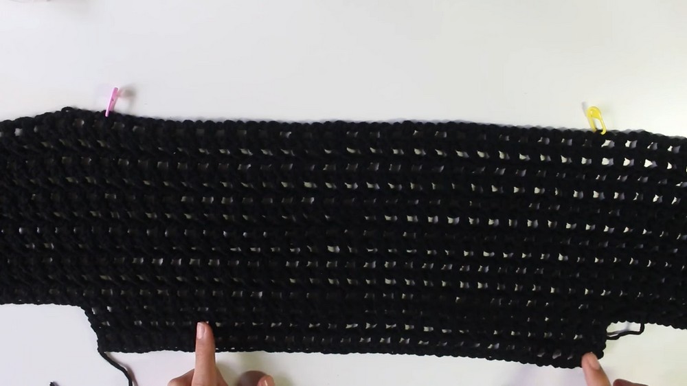 - Modify length: Add or reduce rows until the panels reach the desired sleeve/body length.