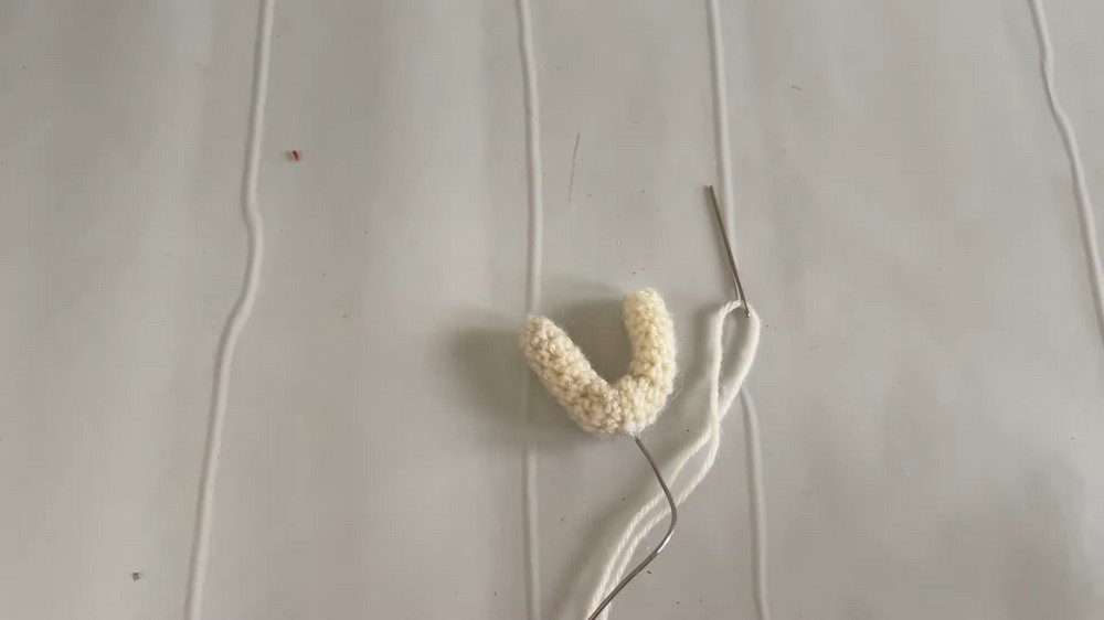 - Fold the crocheted tube into a "U" shape. Insert fiberfill into the tube as needed.