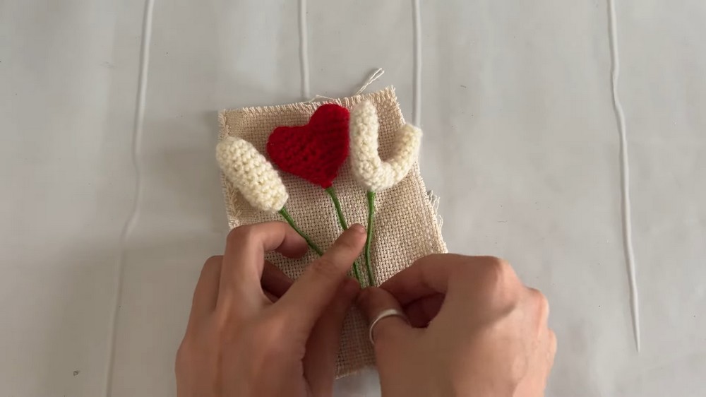 - Once the letters "I," "U," and the heart are complete, arrange them into a bouquet shape.