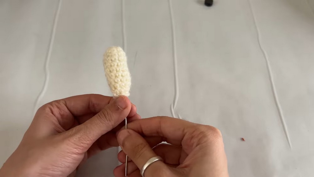 - Continue working 6 sc per round, lightly stuffing as you go, until you complete 20 rows (or your desired length).