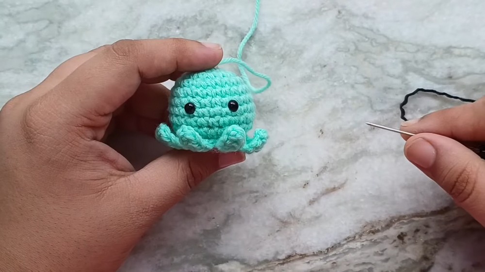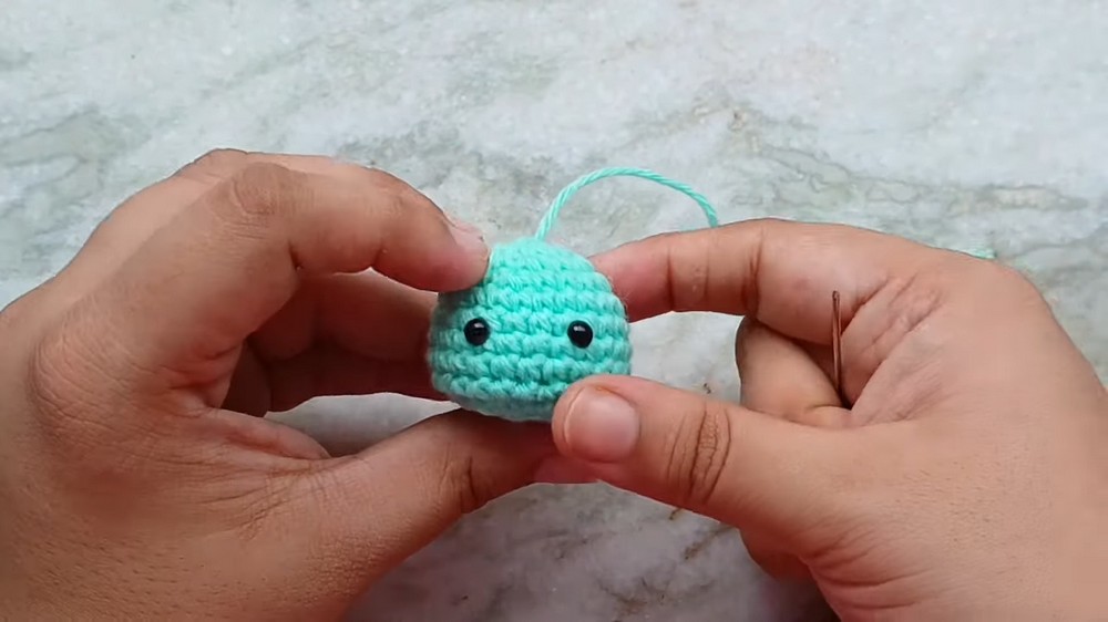 - Knot the yarn securely, hide the ends into the body, and trim excess yarn.