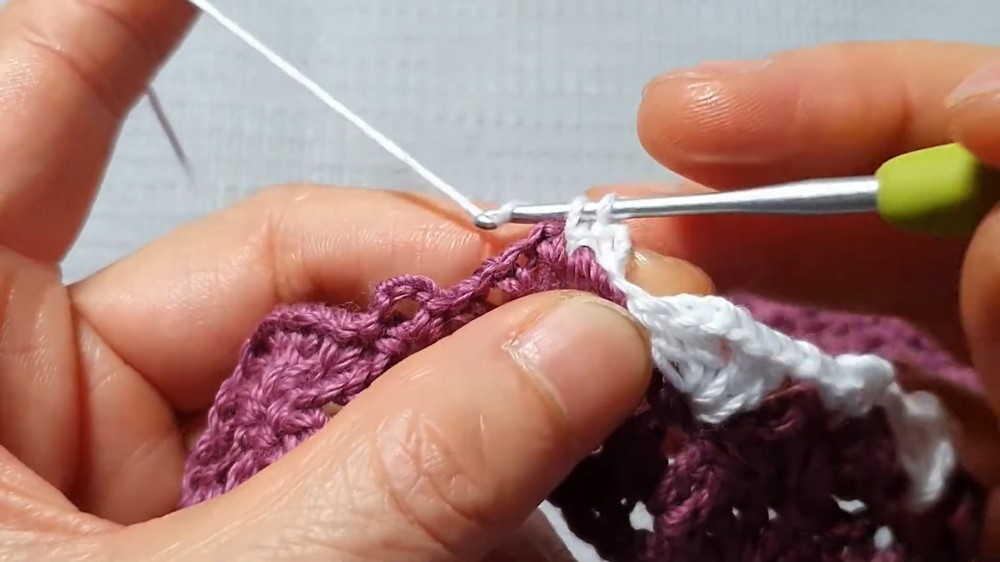 - Add a new color by creating a slip knot and joining at the start of a new row.