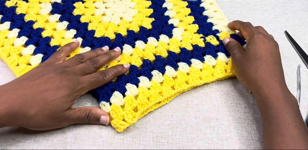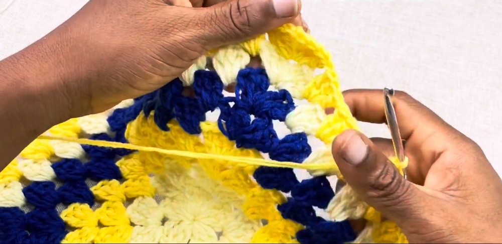 - Corner Spaces: Work 3 double crochets, chain 2, and 3 double crochets in all corner spaces.