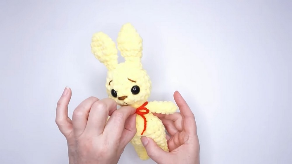 - Tie the ribbon around the bunny’s neck or use hot glue to attach it securely.