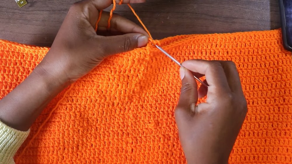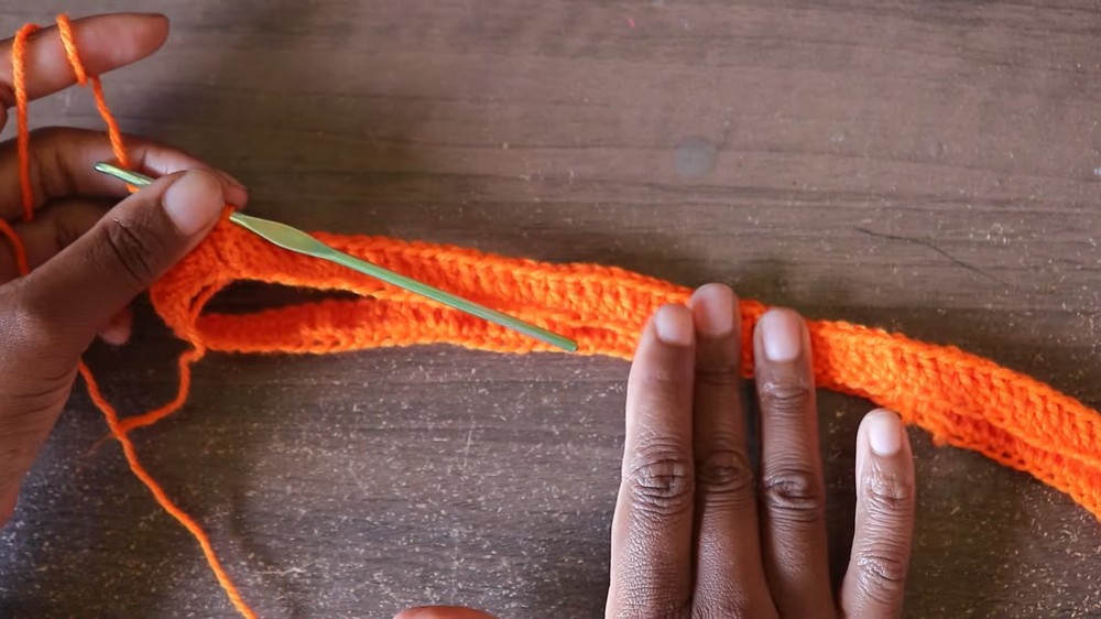 - Repeat double crochet rows until you complete 11 rows.