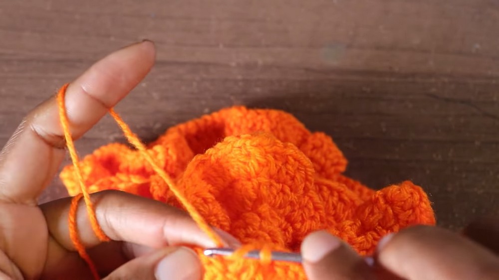 - Alternate three and two double crochets to create a wavy ruffle effect.