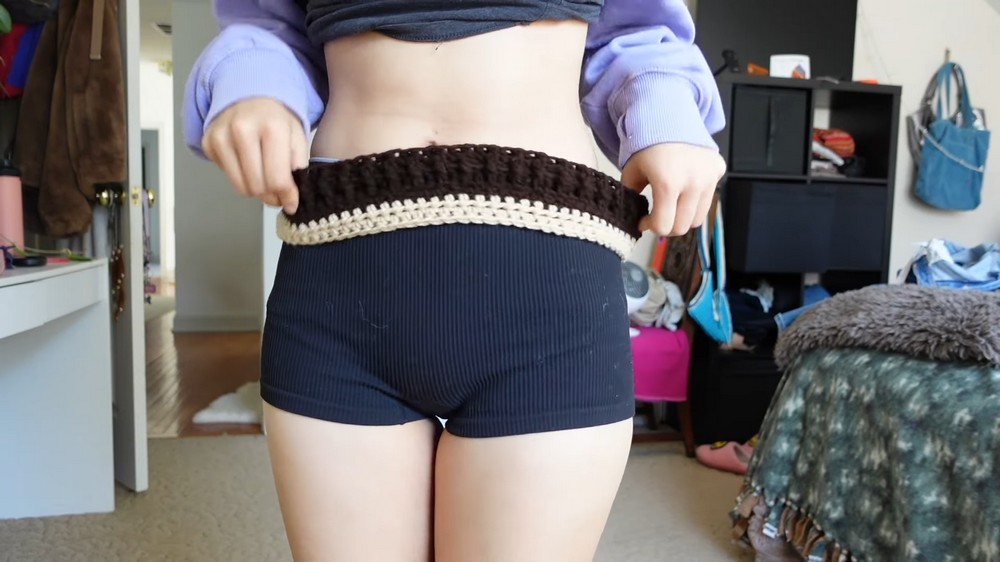 - Measurement: Measure your waist size and deduct a few inches for stretch (Example: Waist 32 inches, crochet around 30 inches).