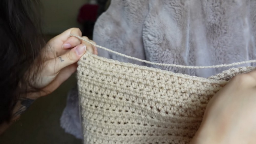 - When you reach the hips, increase by placing two half double crochets in the first and last stitch of the row.