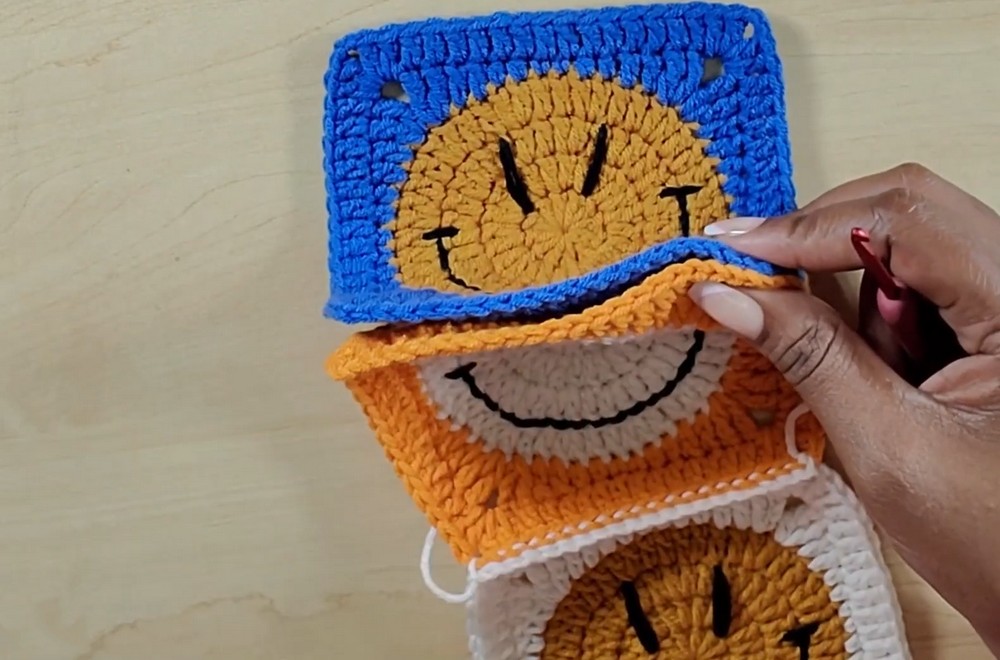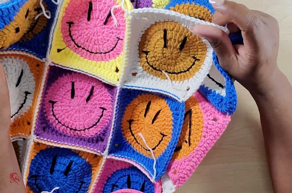 - Make 27 granny squares based on any smiley face granny square pattern.