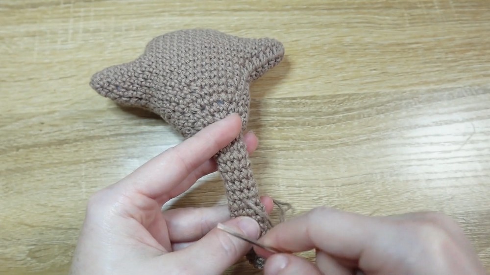 The tail is formed using a gradual decrease in stitches, creating a tapered effect.