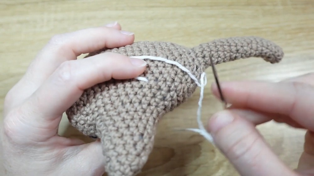 - Check alignment of your stingray body and wings—adjust by gently pulling or reshaping stitches.