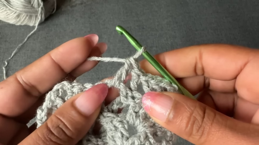 - Skip 2 chains again; repeat (2 dc, ch 2, 2 dc) in the next chain.