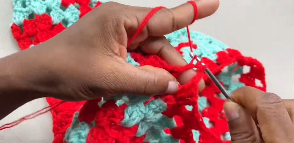 - In corner spaces, always make your corner fan stitch (3 DC, chain 2, 3 DC).