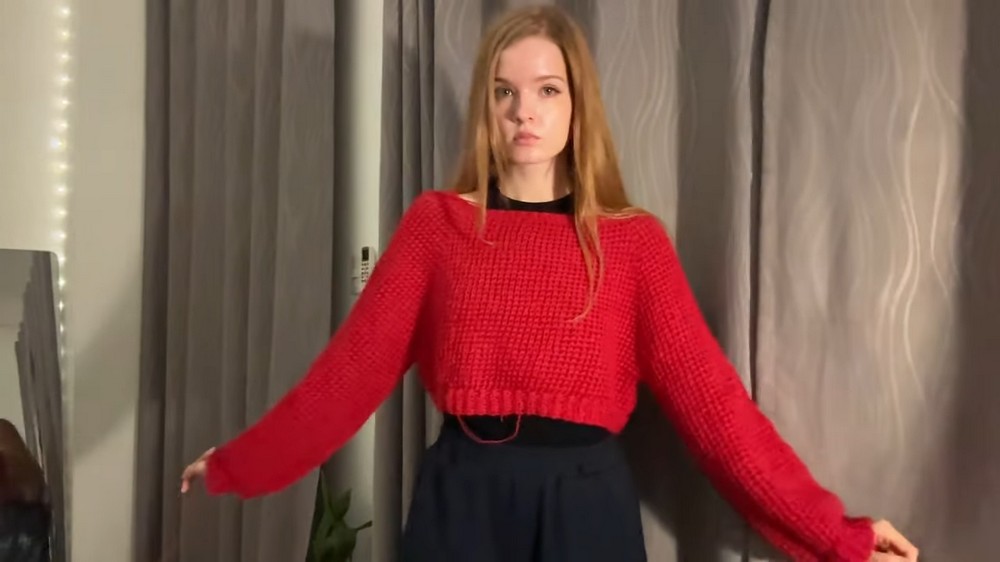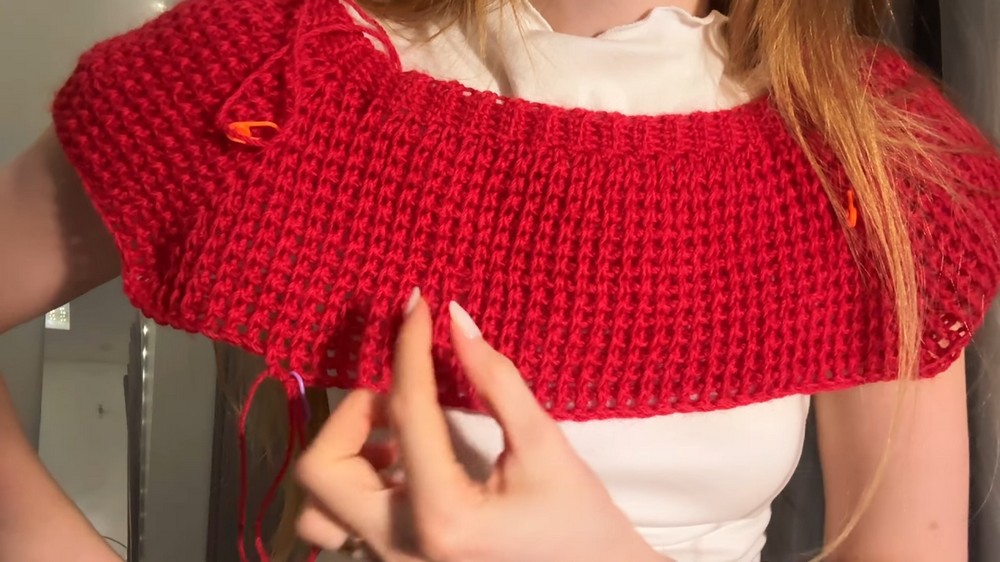 - Join front and back of the sweater underarms, forming sleeves.