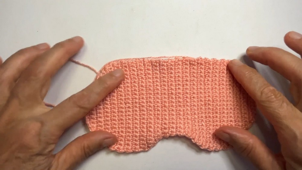 - Work 1 single crochet in each stitch all around the mask’s edge.