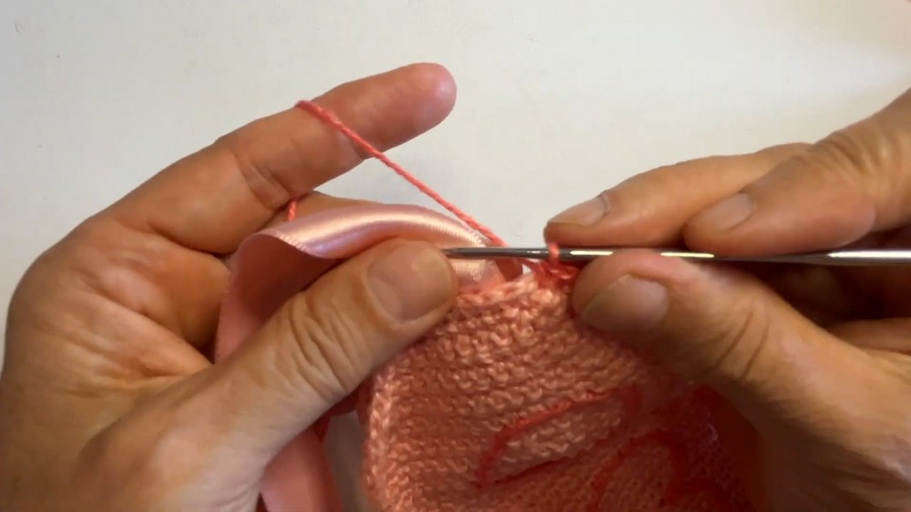 - Add decorative hearts in a contrasting color using surface slip stitching.