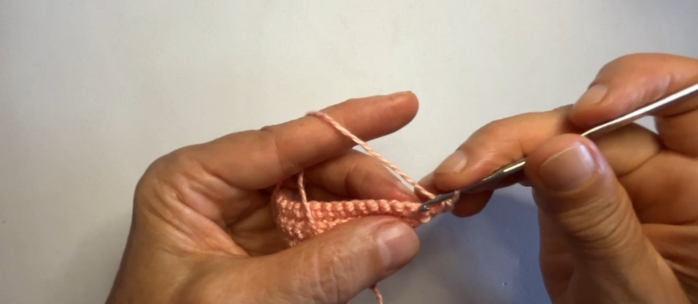 - Crochet 6 sc across, then add 2 sc in the last stitch (10 sts total).