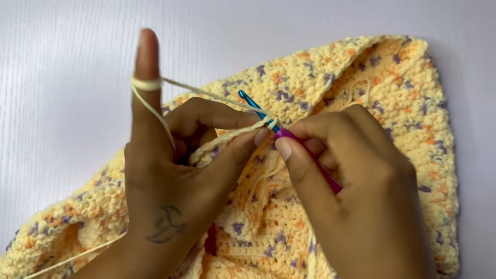 - Begin working the Lemon Peel Stitch (SC/DC alternation) around the leg stitches and crotch chain.
