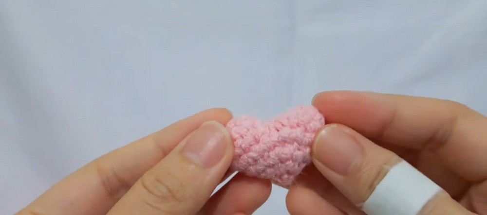 The heart is crocheted first. We make two identical pieces and then join them together.